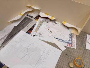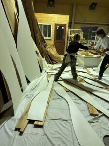 staffでもある高校生(幼少期から通っている生徒)には、今年も什器制作を任せています。イメージを共有し、ラフスケッチを渡した後は、彼女なりの考えやセンスで作り上げています。技術も経験も少ない中、その場その場で考え対応していく、まさにスーパ―高校生!どうな風に出来上がるのか、私も楽しみでなりません。